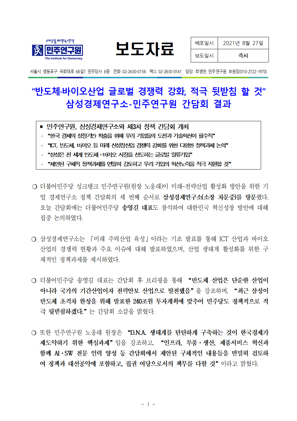 보도자료_간담회결과_반도체·바이오산업_글로벌_경쟁력_강화,_적극_뒷받침_할_것_삼성경제연구소(210827)(최종).hwp