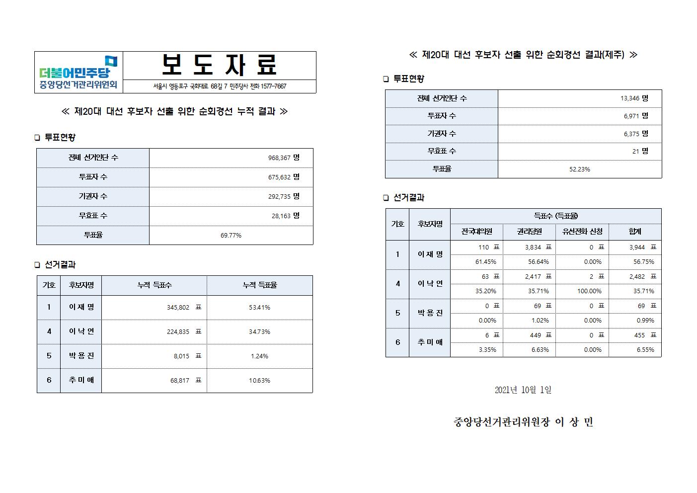 211001_제20대_대선후보자_선출_위한_순회경선_결과_보도자료(제주)_fn.hwp