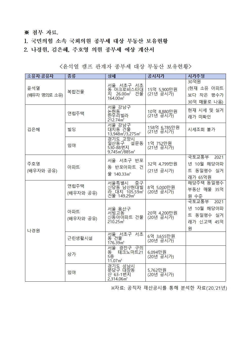 [보도자료] 더불어민주당 선대위 현안대응TF, "국민의힘 윤석열 후보 종부세 폐지 공약, 균형발전 무시한 셀프 절세 전략"