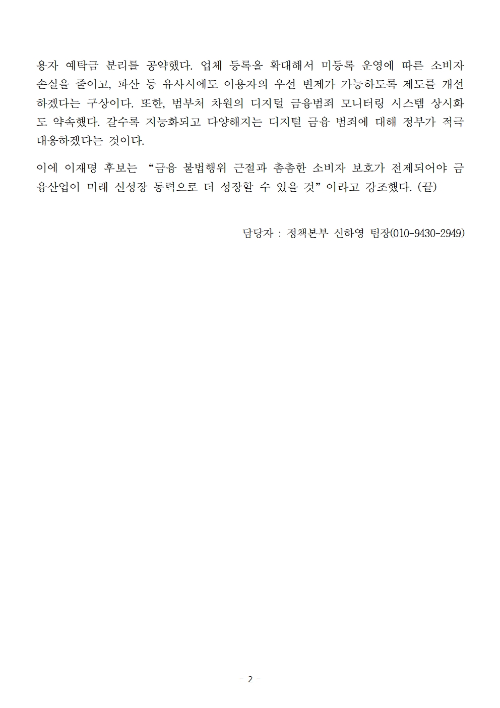 [보도자료] 더불어민주당 선대위 정책본부, '이재명의 합니다. 소확행 공약 시리즈 16' 금융소비자 보호 공약