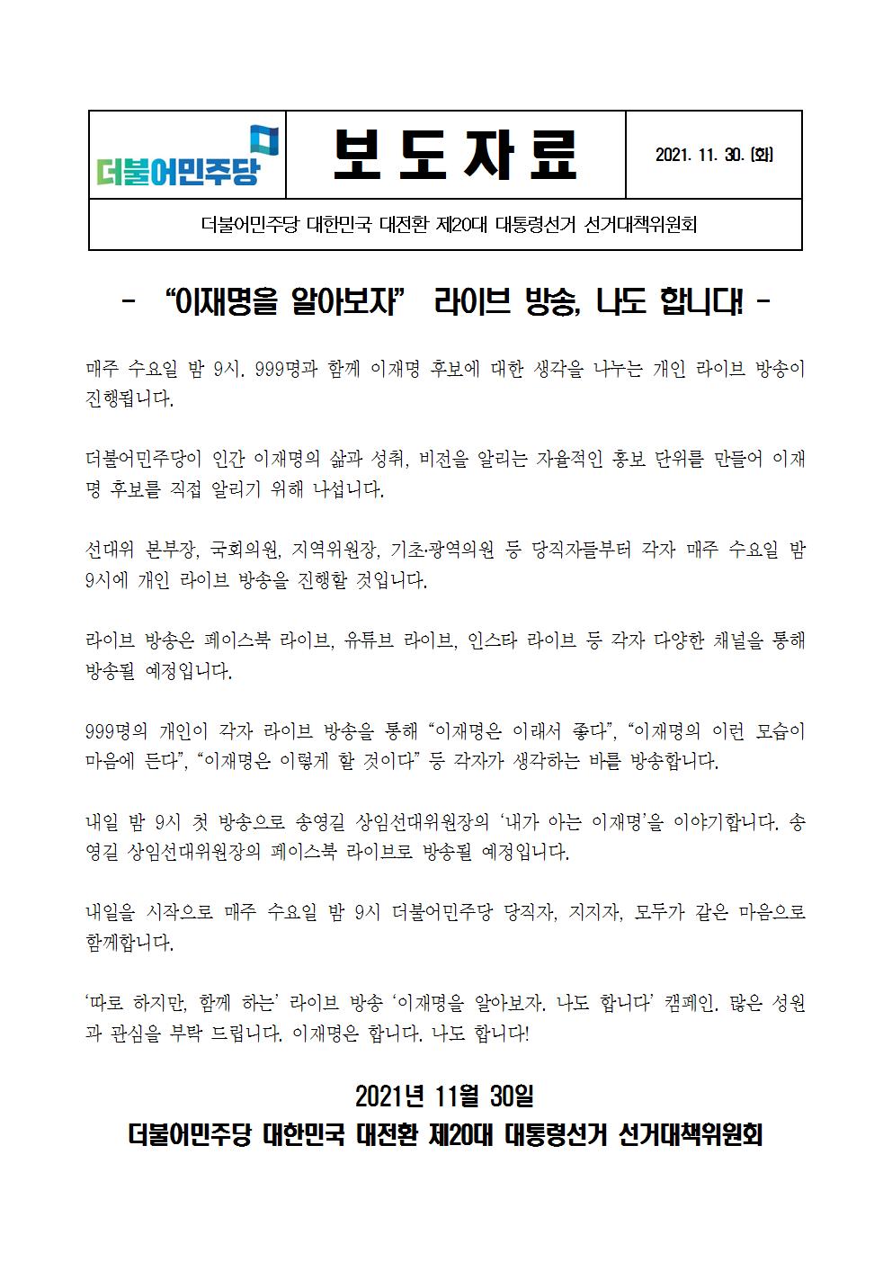 211130_보도자료이재명을_알아보자_라이브_방송.hwp