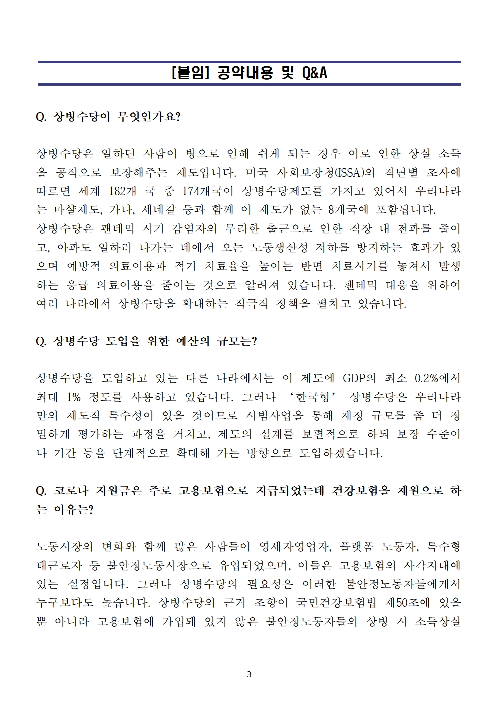 [보도자료] 더불어민주당 선대위 정책본부, '이재명의 합니다. 소확행 공약 시리즈 17' 상병수당 도입