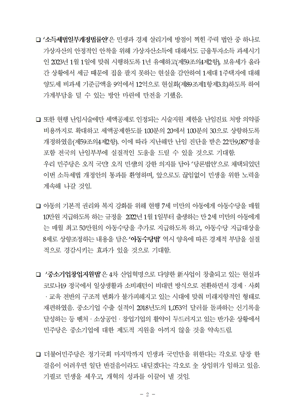 [보도자료] 더불어민주당 정책위원회, "민생ㆍ경제 살리기” 주요 법안 처리 성과(수정)