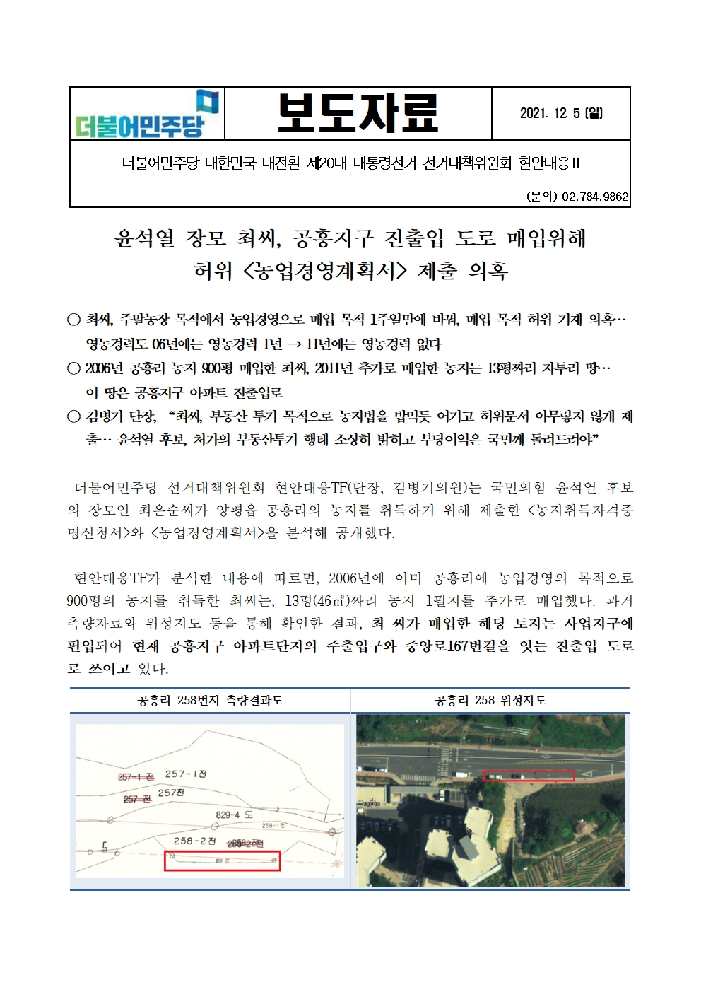 211205_현안대응TF_보도자료_윤석열_장모_최씨,_공흥지구_진출입로_자투리농지_매입_위해_양평읍에_허위자료_제출.pdf