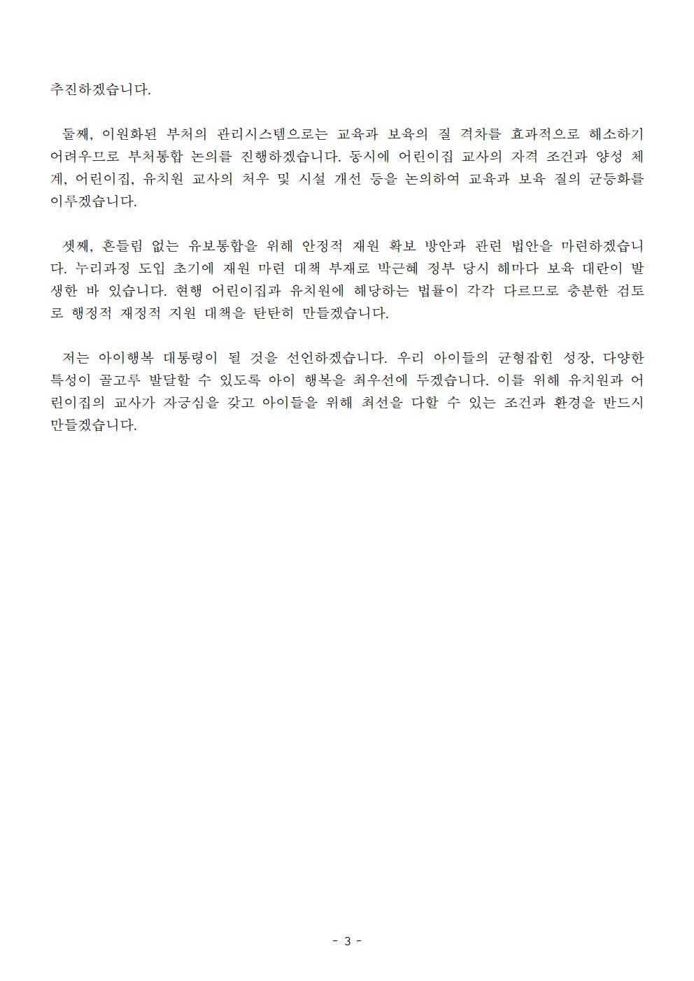 [보도자료] 더불어민주당 선대위 정책본부, 유치원 보육시설 통합 방안 공약 발표