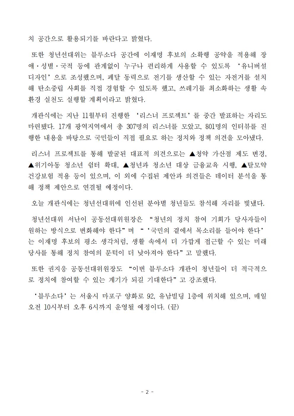 [보도자료] 더불어민주당 다이너마이트 청년선대위 미래당사 블루소다 개관