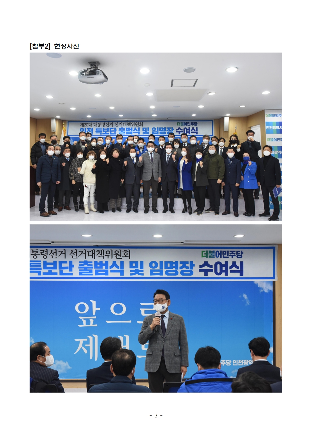 [보도자료] 더불어민주당 선대위 특보단, 인천 특보단 출범식 및 임명장 수여식 개최