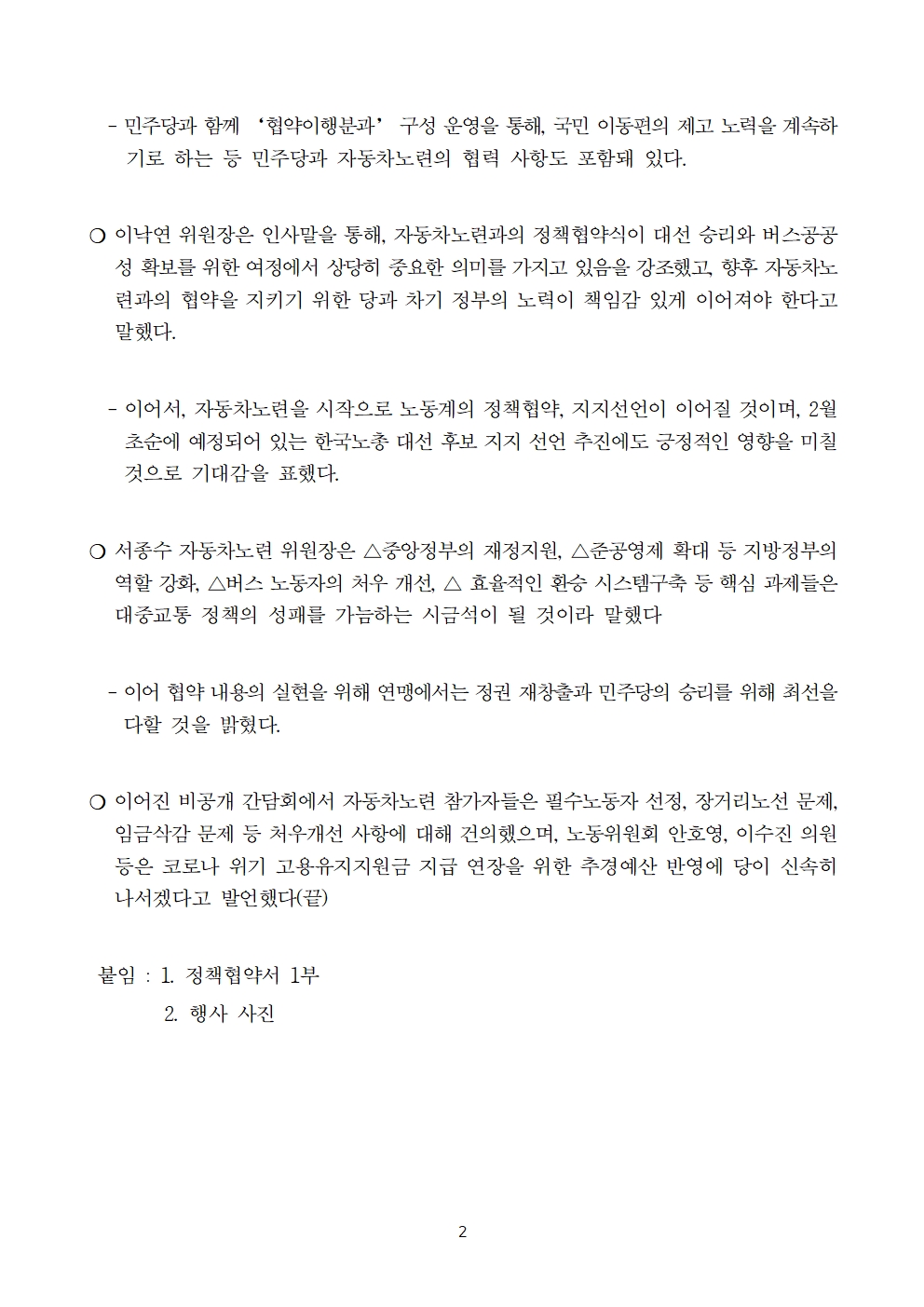 [보도자료] 더불어민주당 선대위 노동위원회, 전국자동차노동조합연맹과 정책협약식 개최