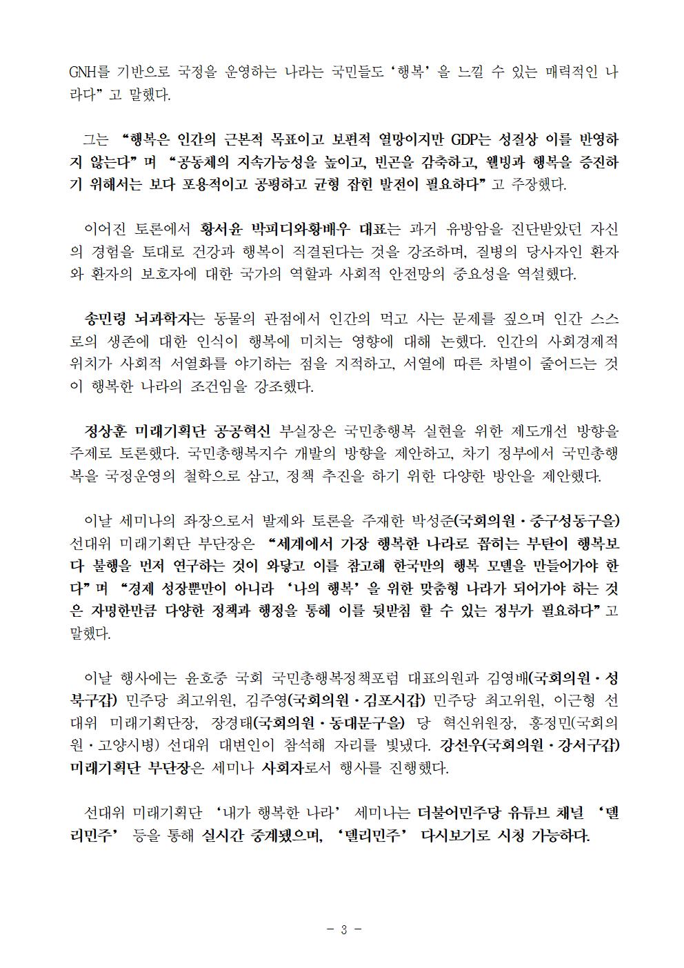 [보도자료] 더불어민주당 선대위 미래기획단 내가 행복한 나라 세미나 개최