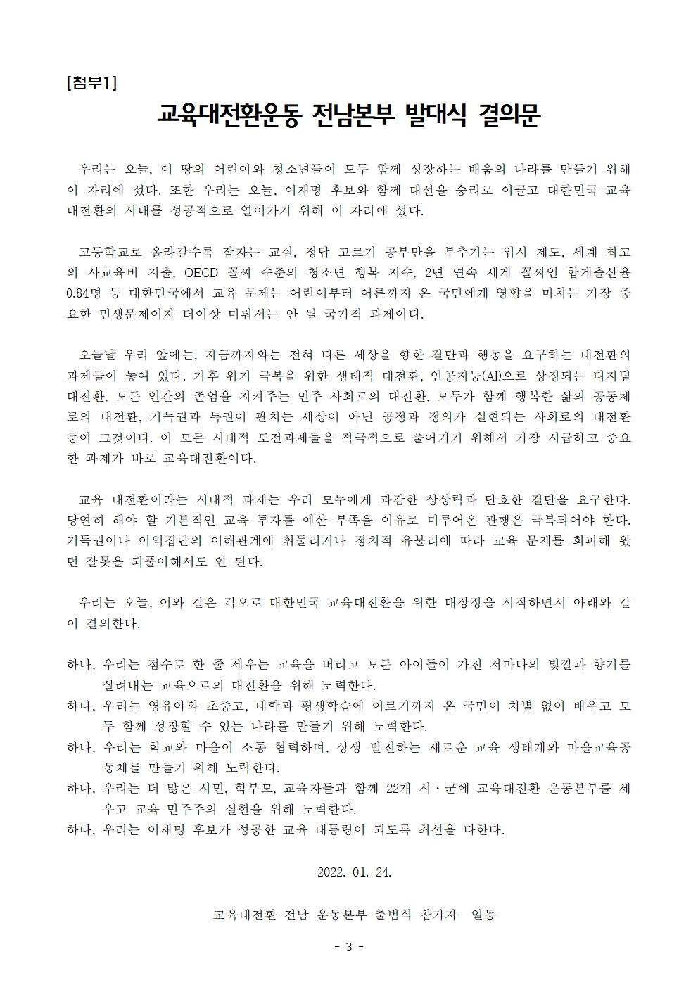 [보도자료] 더불어민주당 선대위 교육대전환위원회, '교육대전환운동본부' 17개 시·도 발대식 개최