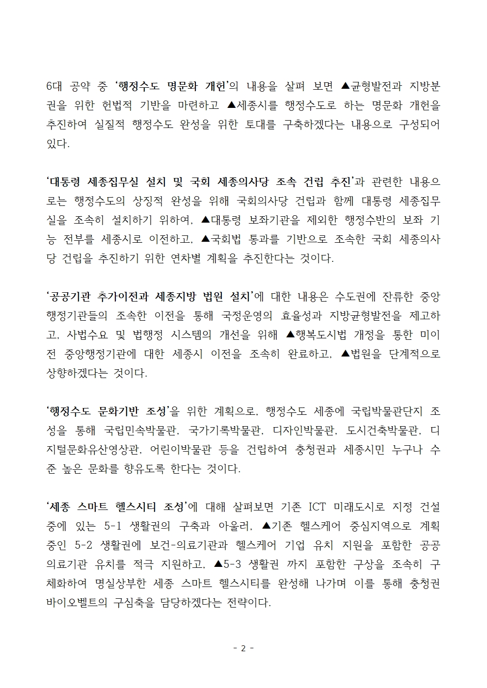 [보도자료] 더불어민주당 선대위 정책본부, 세종 6대 공약 발표