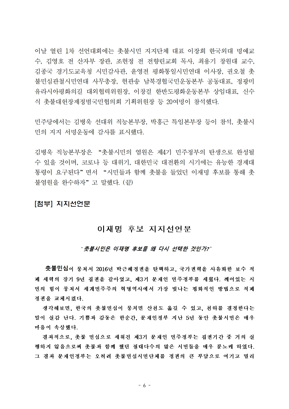 [보도자료] 더불어민주당 선대위 사회적경제위원회, 사회적경제인 3,488명 후보 지지선언