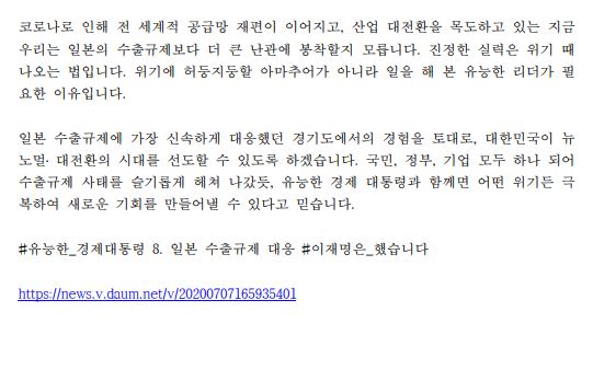 [보도자료] 더불어민주당 선대위 현안대응TF, 이재명 후보 '유능한 경제대통령' 여덟 번째 시리즈, '일본 수출규제 대응' 성과 소개