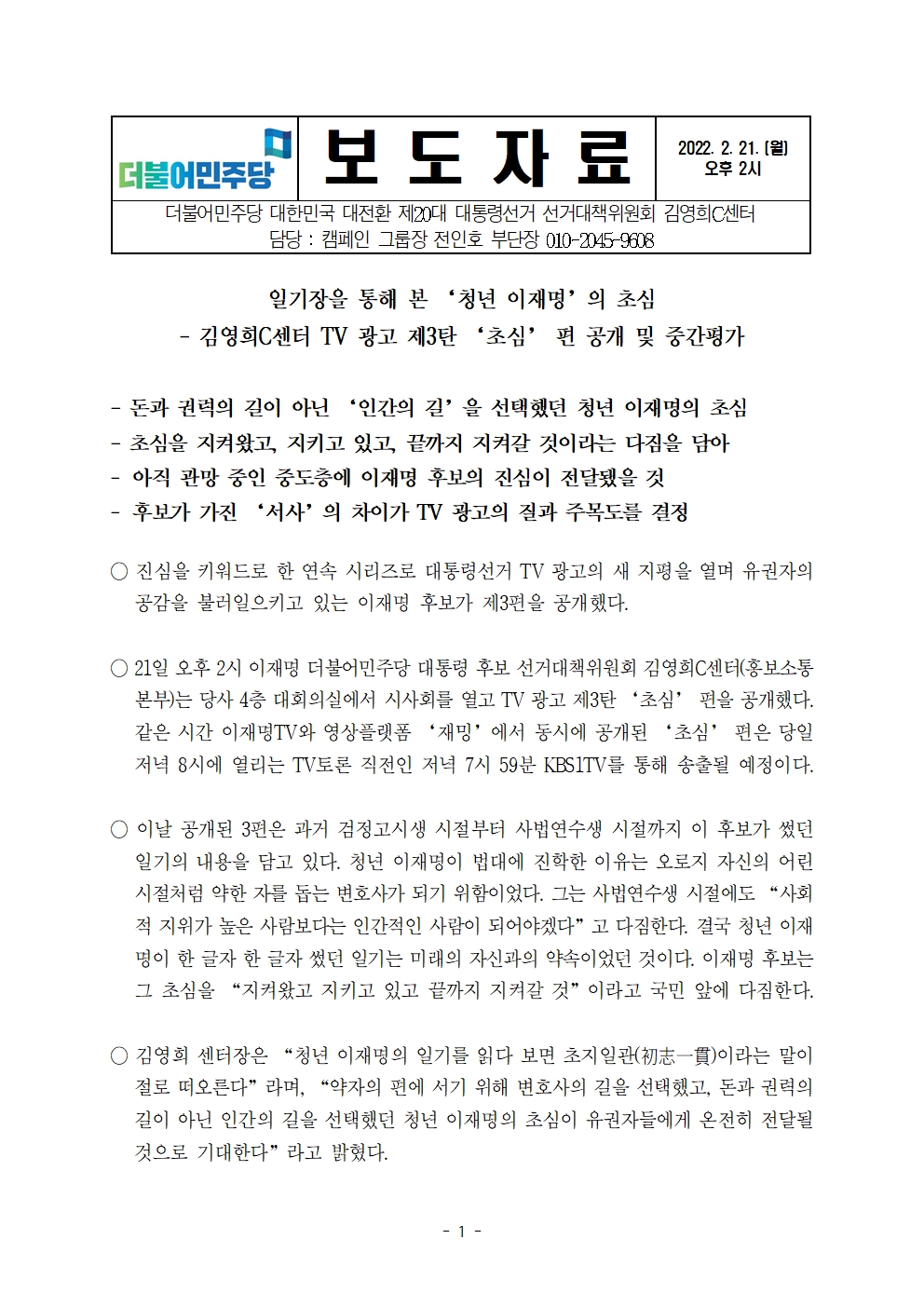 220221_TV광고3차_초심편청년이재명의일기_중간평가_보도자료_이재명캠프_김영희C센터.pdf