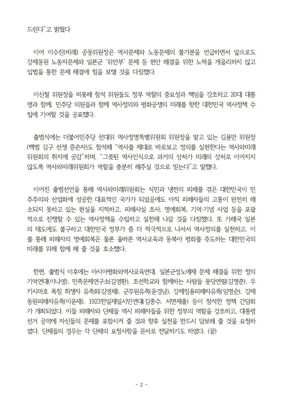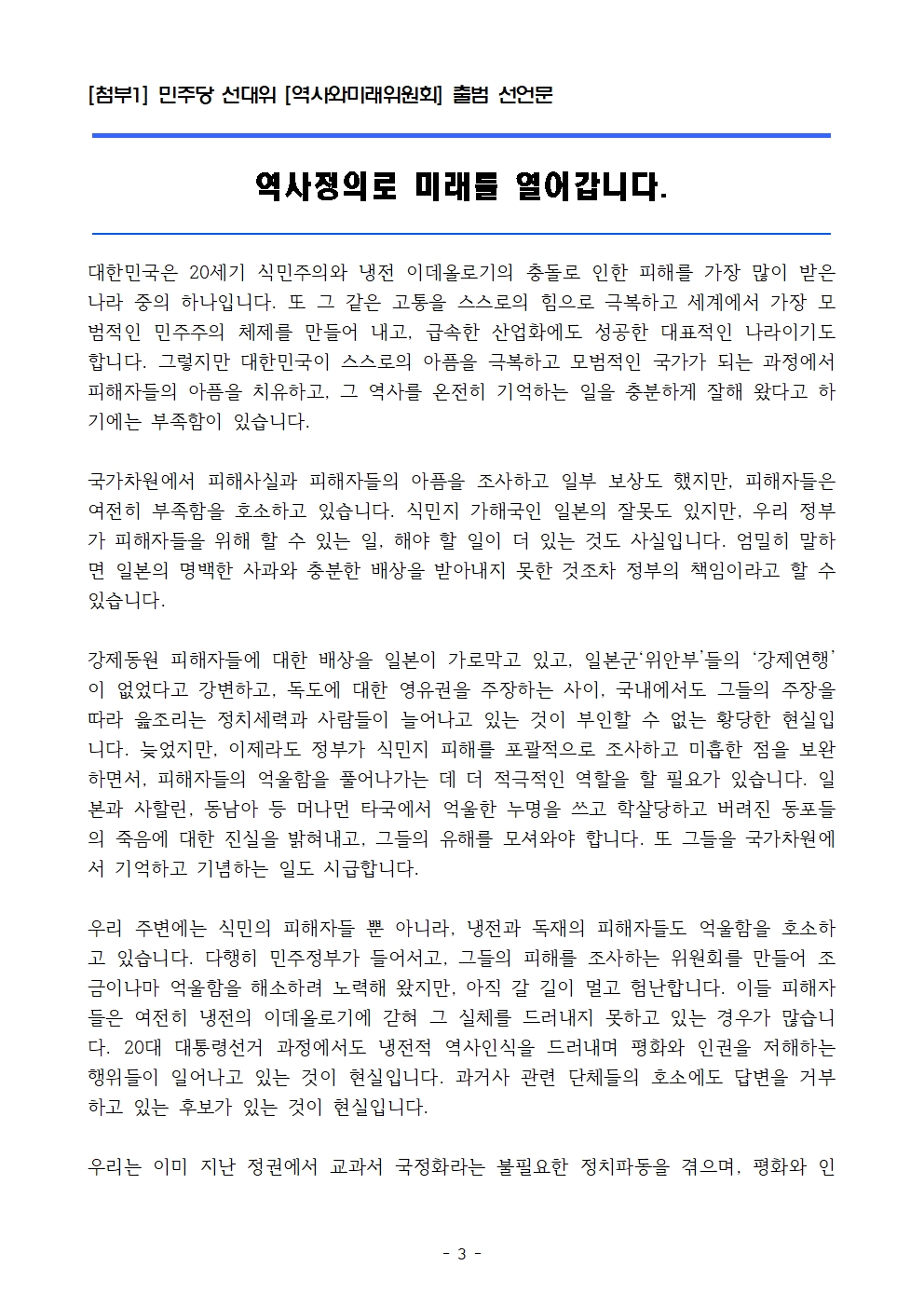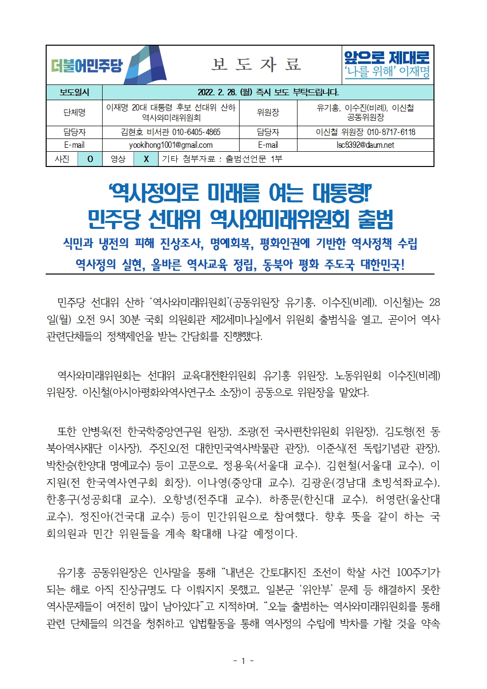 [보도자료] 더불어민주당 선대위 역사와미래위원회 출범
