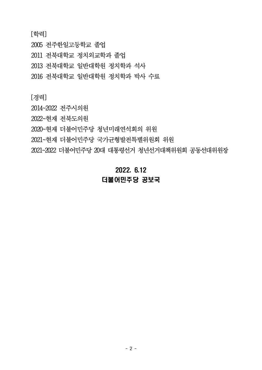 [보도자료]서난이 전북도의원 당선자 비상대책위원 내정 관련