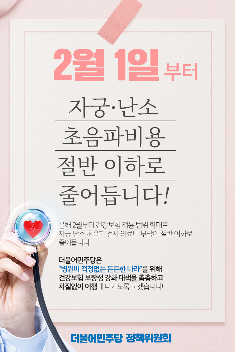 2월 1일부터 자궁, 난소 초음파비용이 절반 이하로 줄어듭니다!