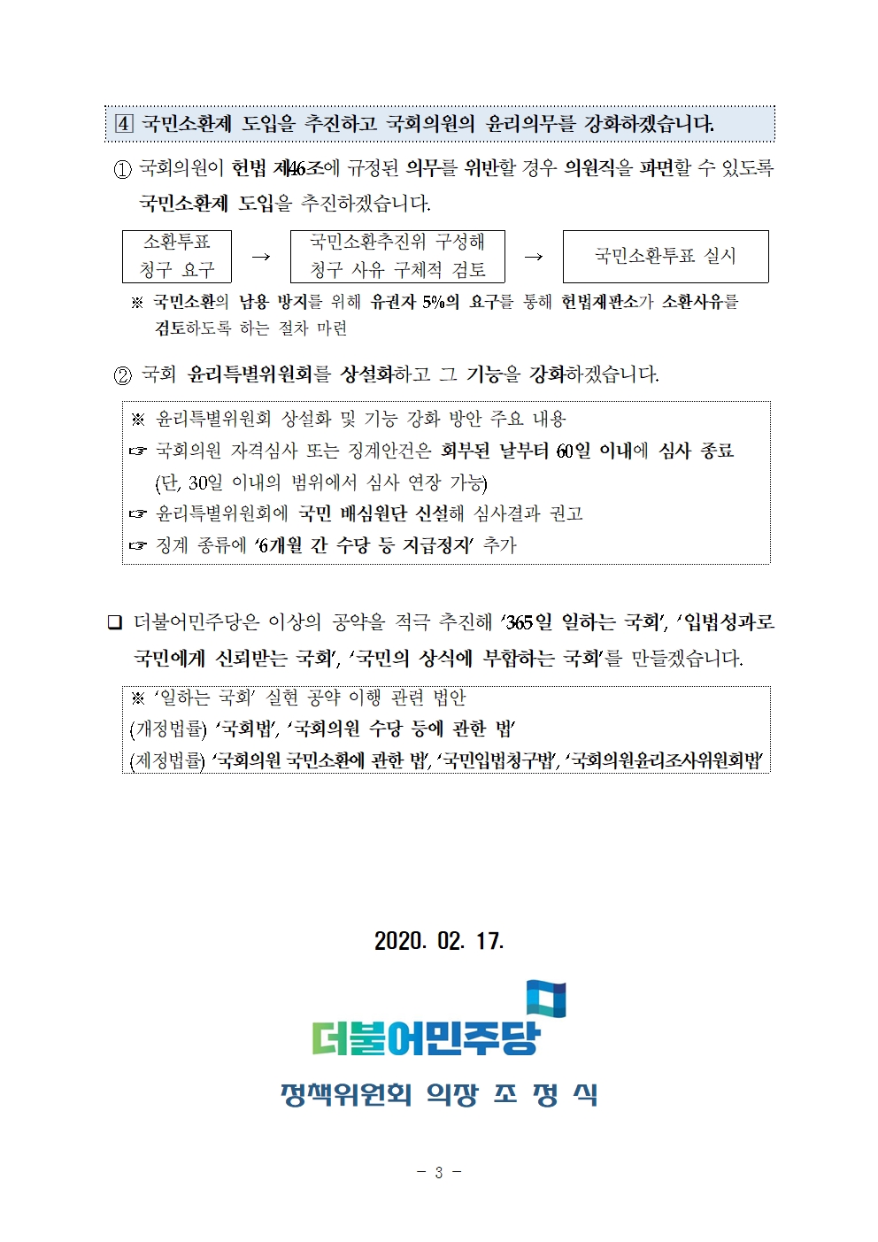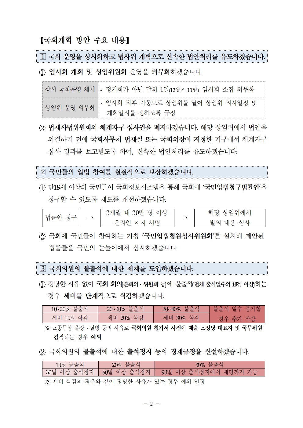[총선공약] “일하는 국회! 신뢰받는 국회를 만들겠습니다!”