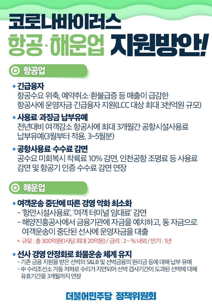 코로나바이러스 항공·해운업, 관광업, 외식업 지원방안!