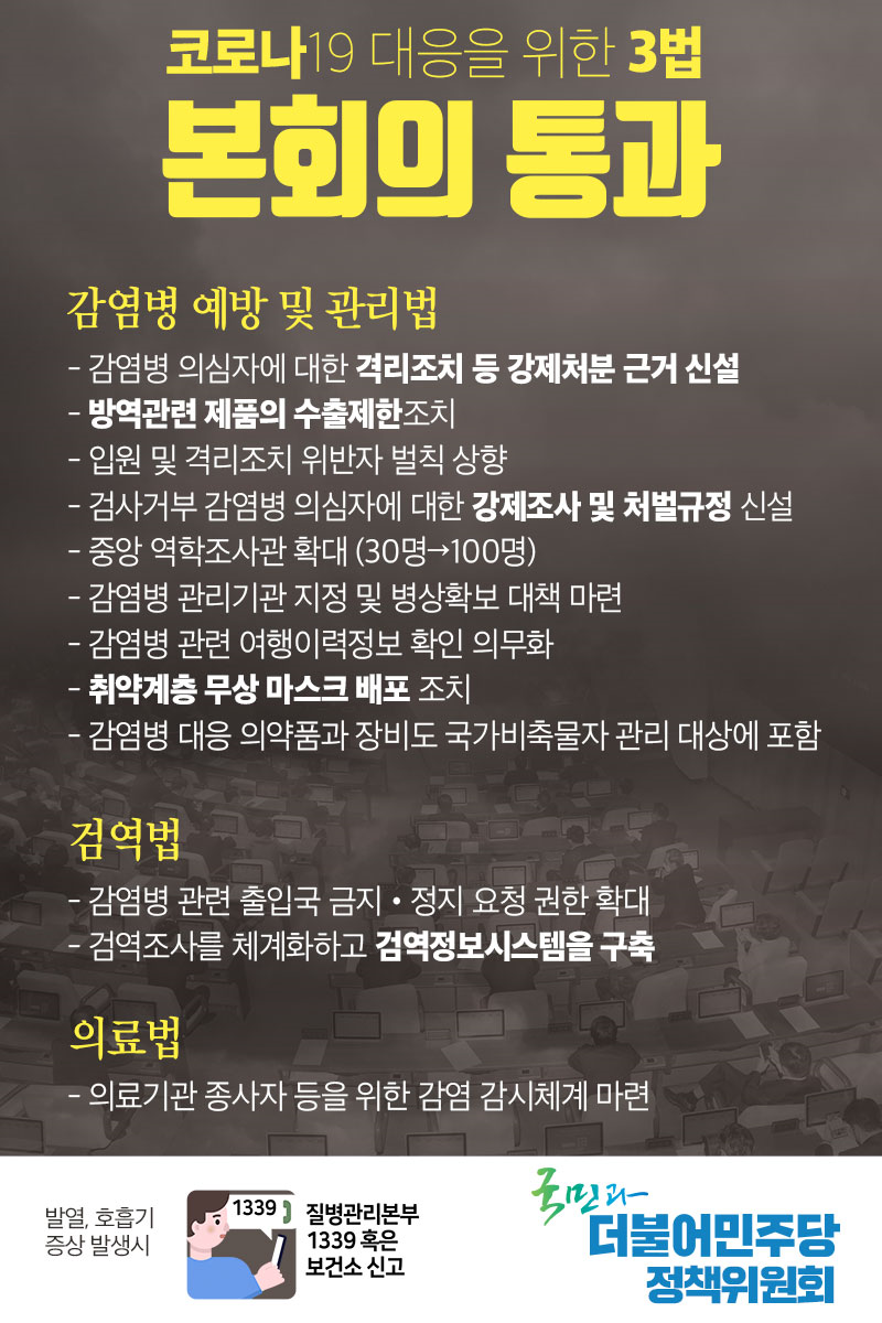 코로나19 대응을 위한 3법, 본회의 통과!