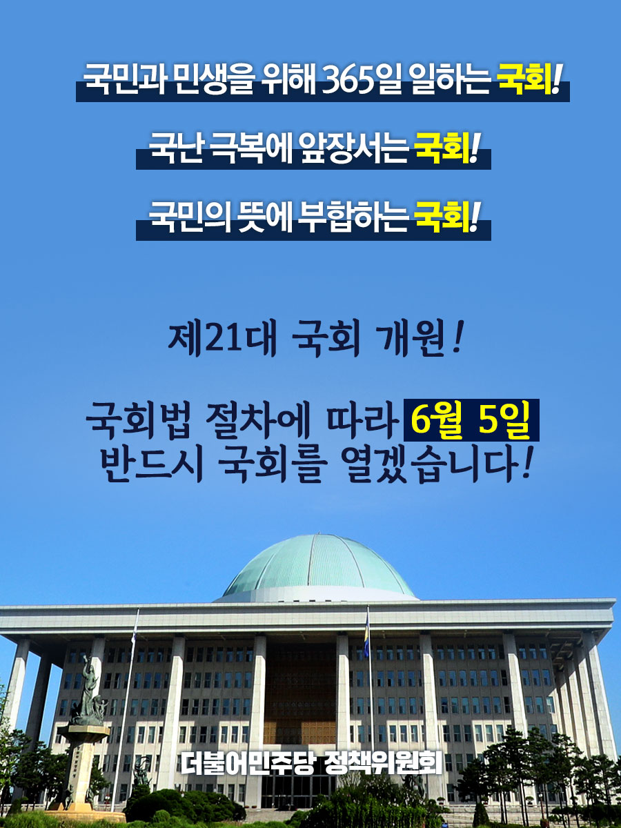 국회법 절차에 따라 6월 5일 반드시 국회를 열겠습니다!