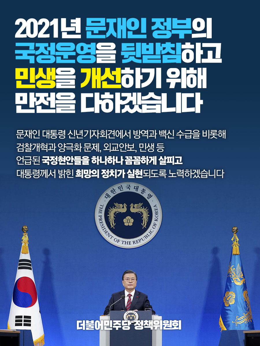 2021년 문재인 정부의 국정운영을 뒷받침하고 민생을 개선하기 위해 만전을 다하겠습니다