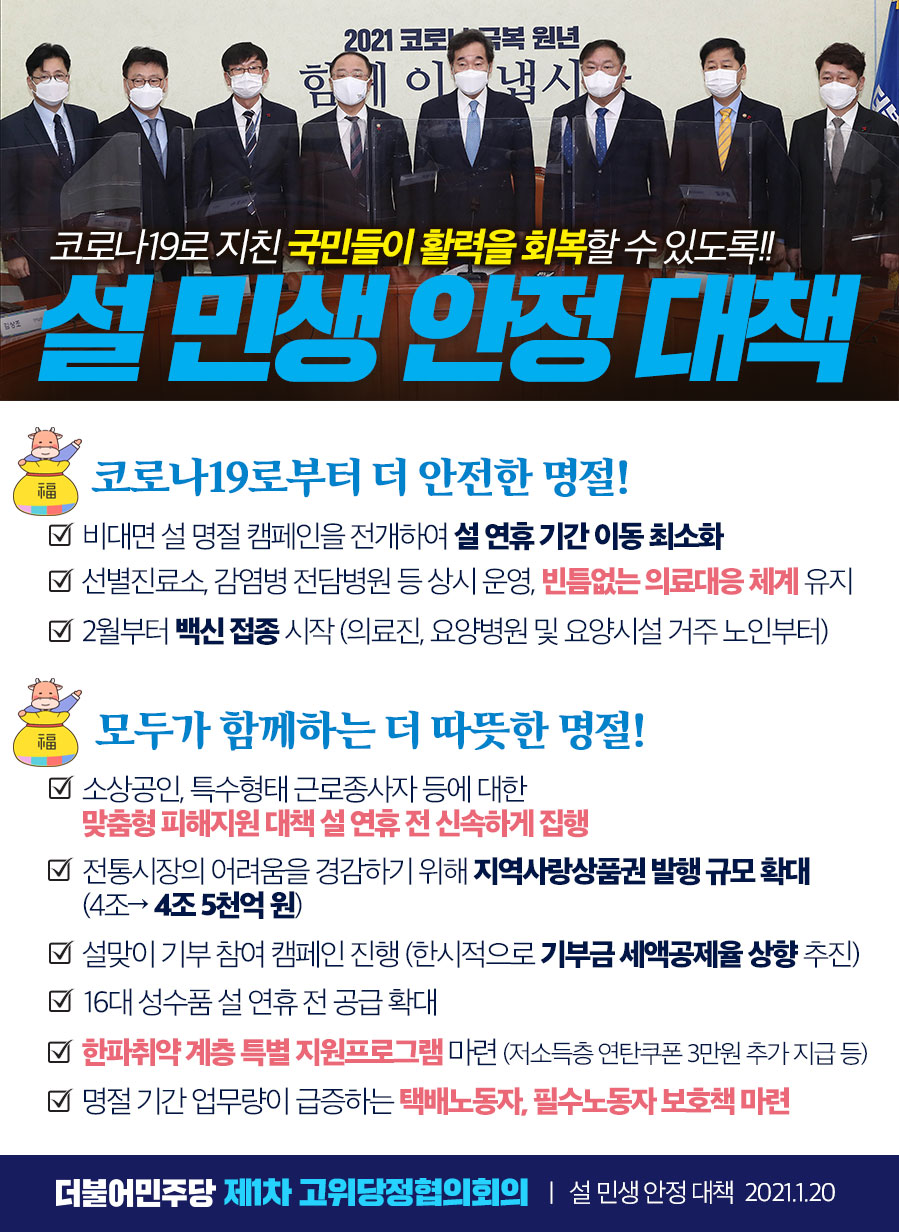 코로나19로 지친 국민들이 활력을 회복할 수 있도록! 설 민생 안정 대책