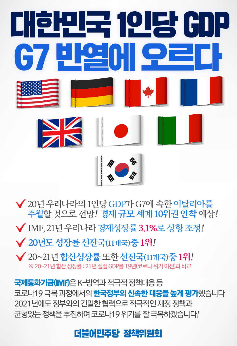 대한민국 1인당 GDP G7 반열에 오르다