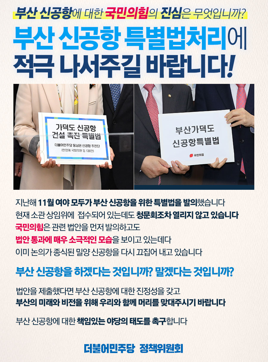 부산 신공항 특별법처리에 적극 나서주길 바랍니다!