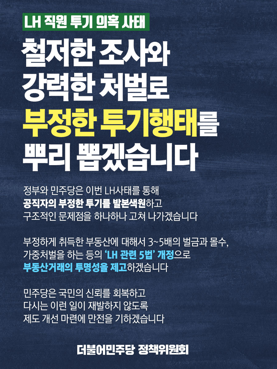 철저한 조사와 강력한 처벌로 부정한 투기행태를 뿌리 뽑겠습니다