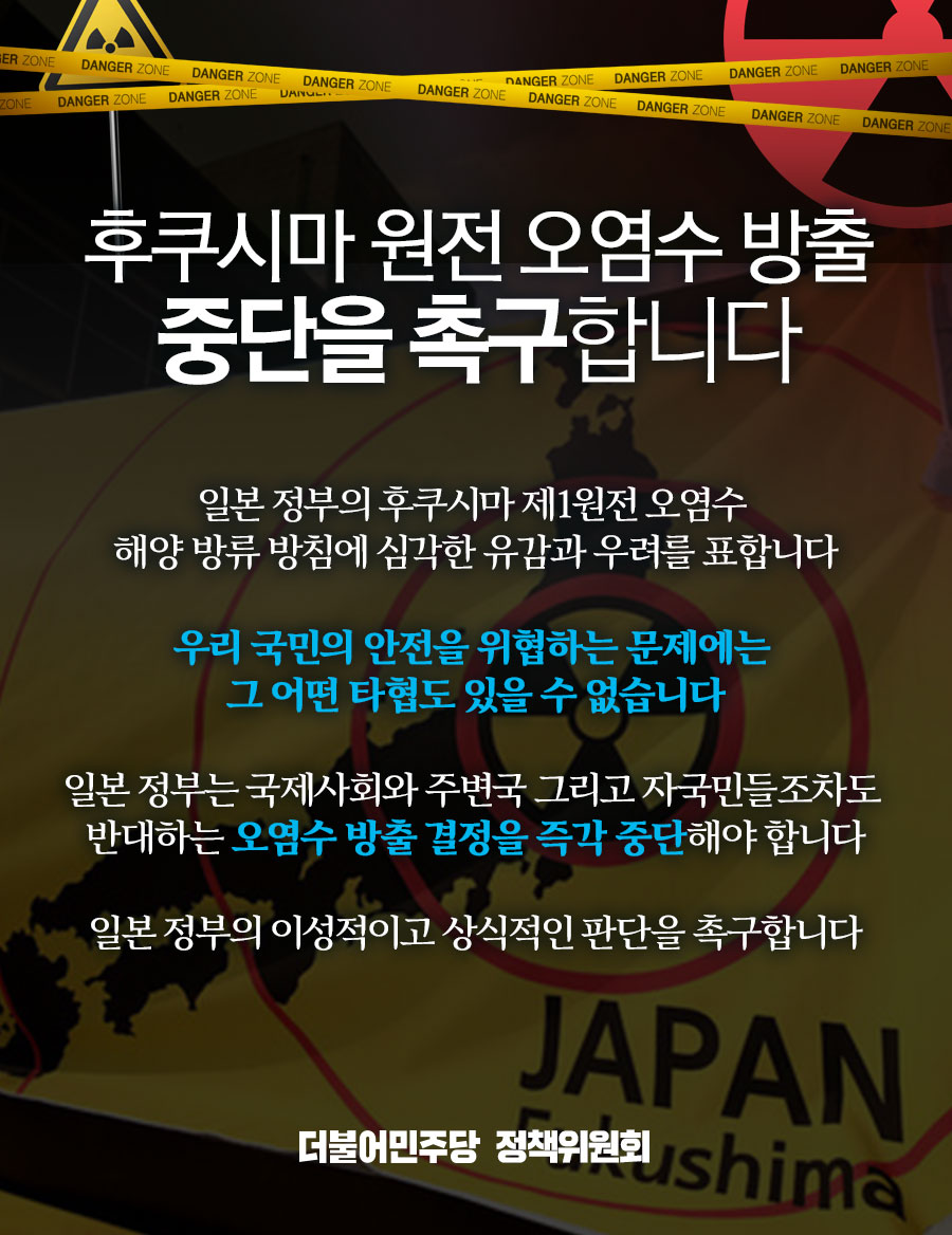 후쿠시마 원전 오염수 방출 중단을 촉구합니다!