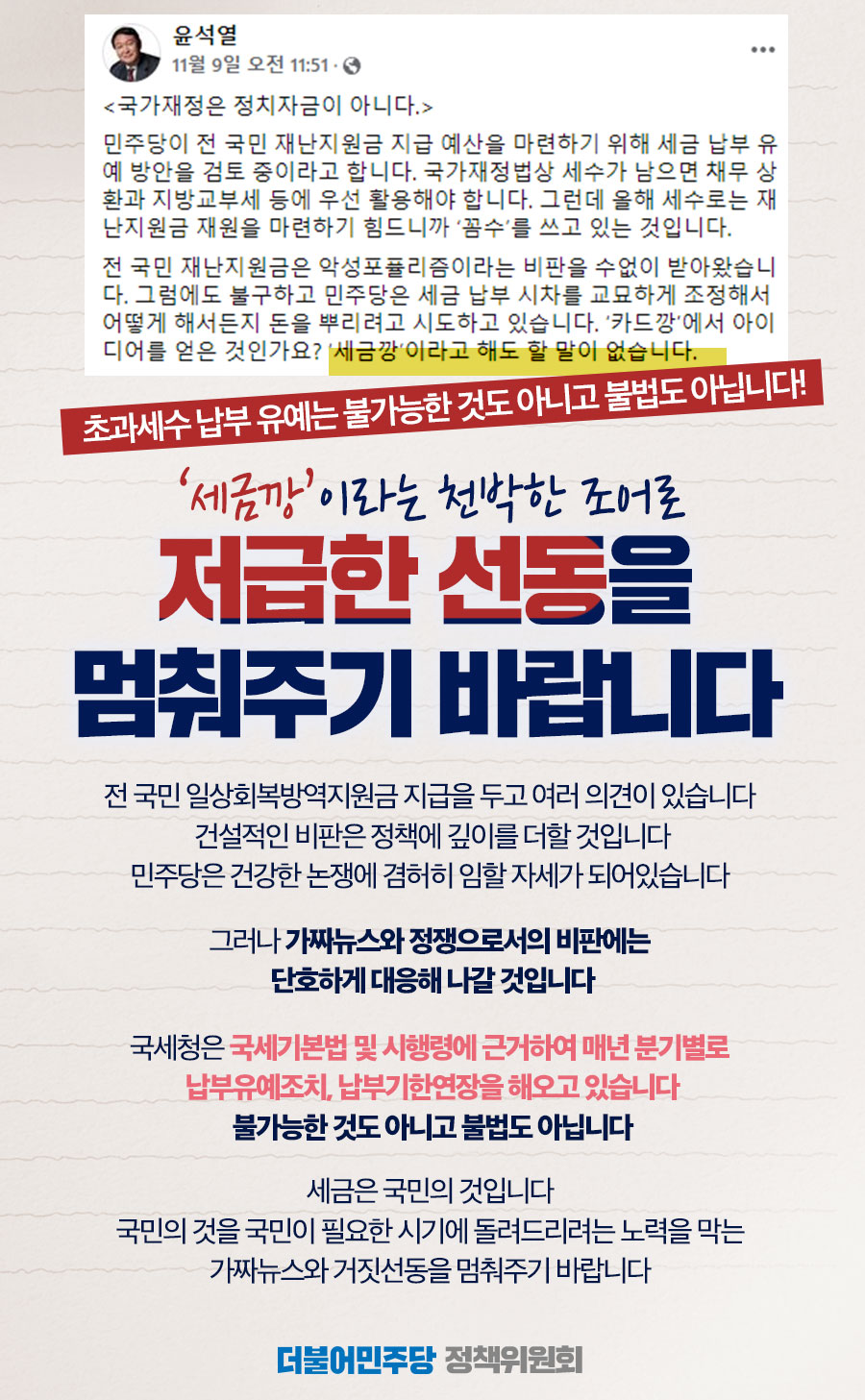 '세금깡'이라는 천박한 조어로 저급한 선동을 멈춰주기 바랍니다