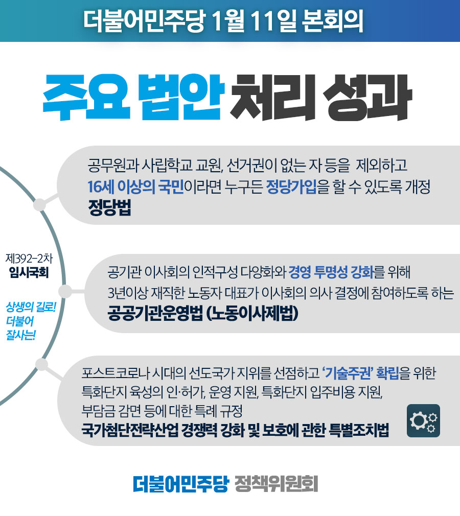 더불어민주당 1월 11일 본회의 주요 법안 처리 성과!