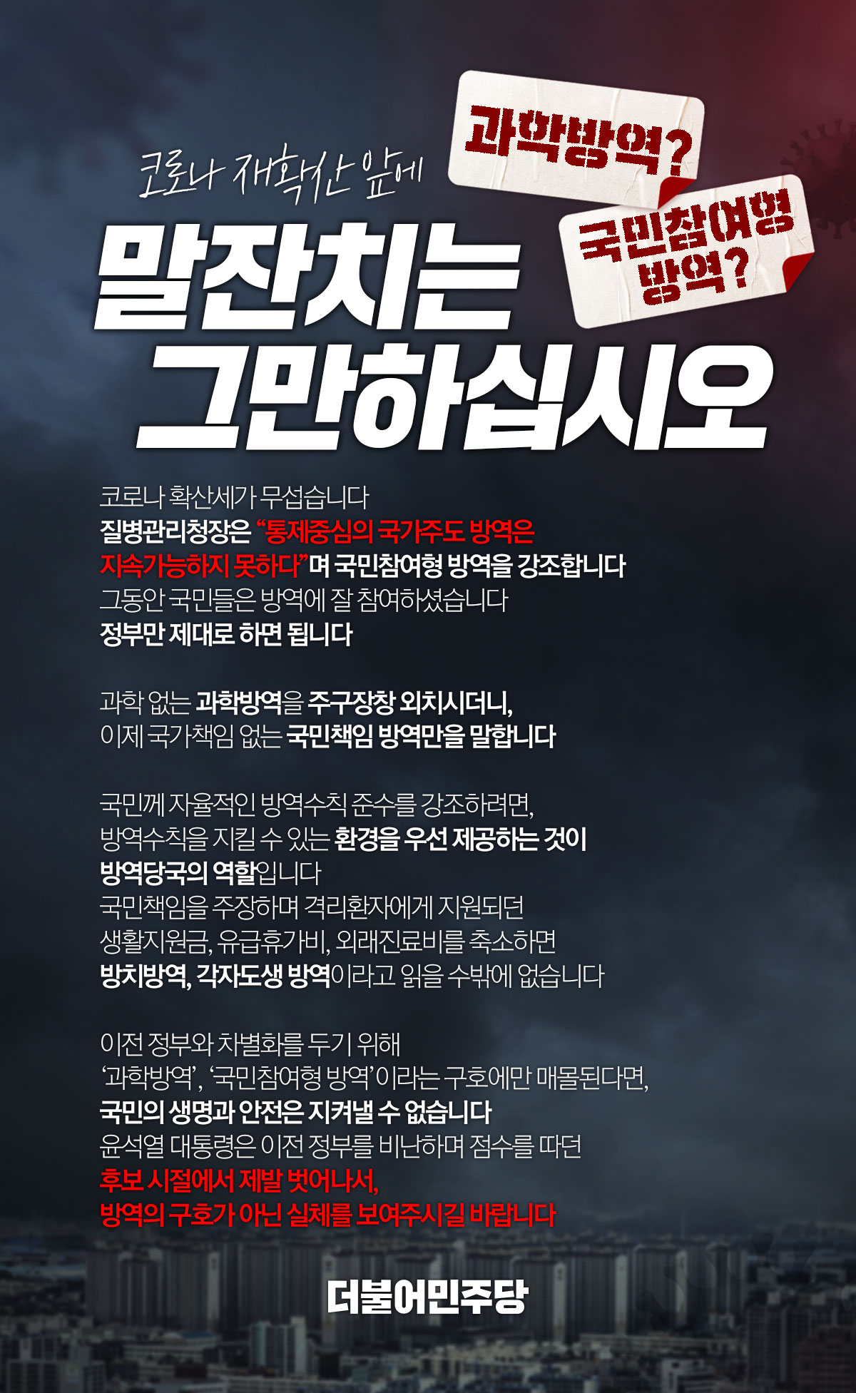 코로나 재확산 앞에 말잔치는 그만하십시오.