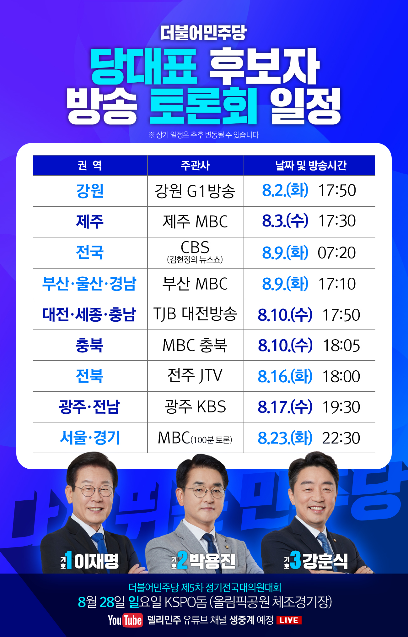 당대표 후보자 방송토론회 일정