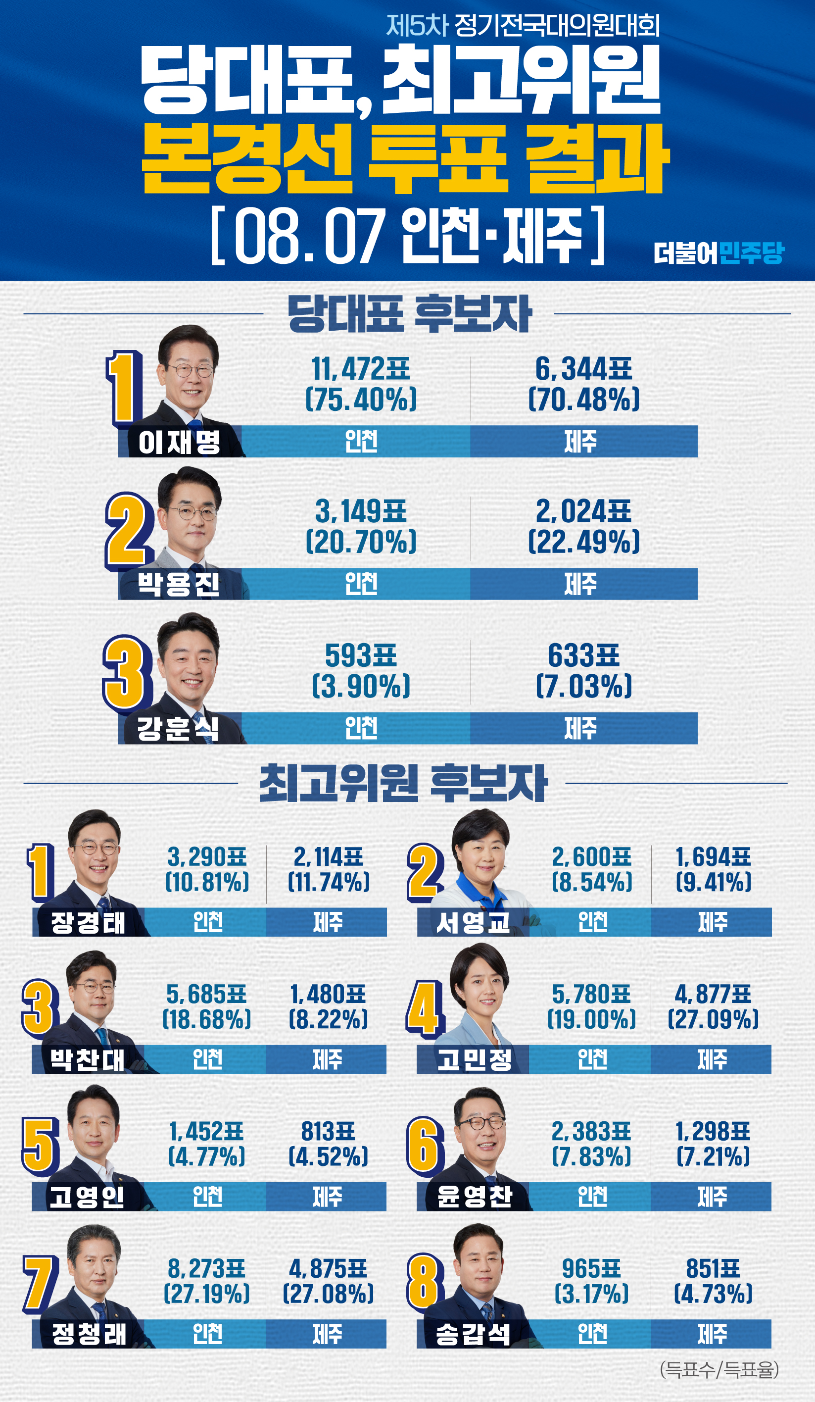 당대표, 최고위원 본경선 투표 결과 [인천, 제주]