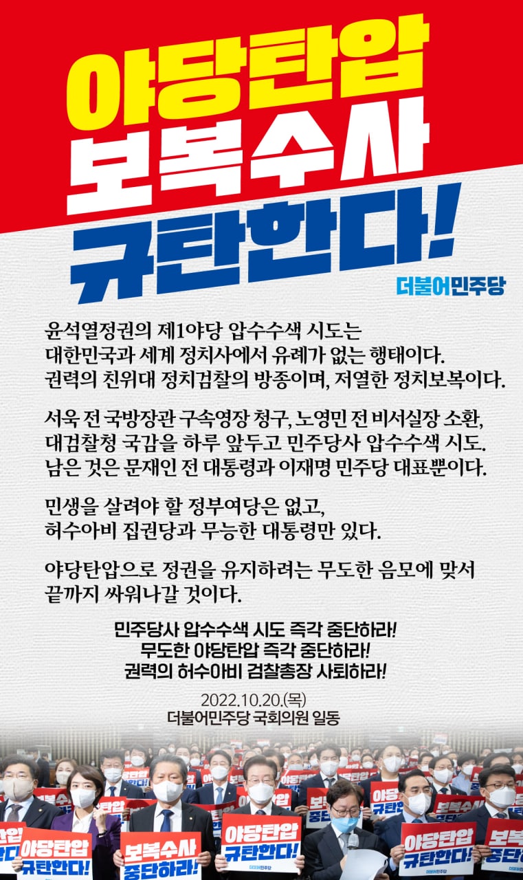 윤석열 정권은 무자비한 야당탄압을 당장 중지하라!