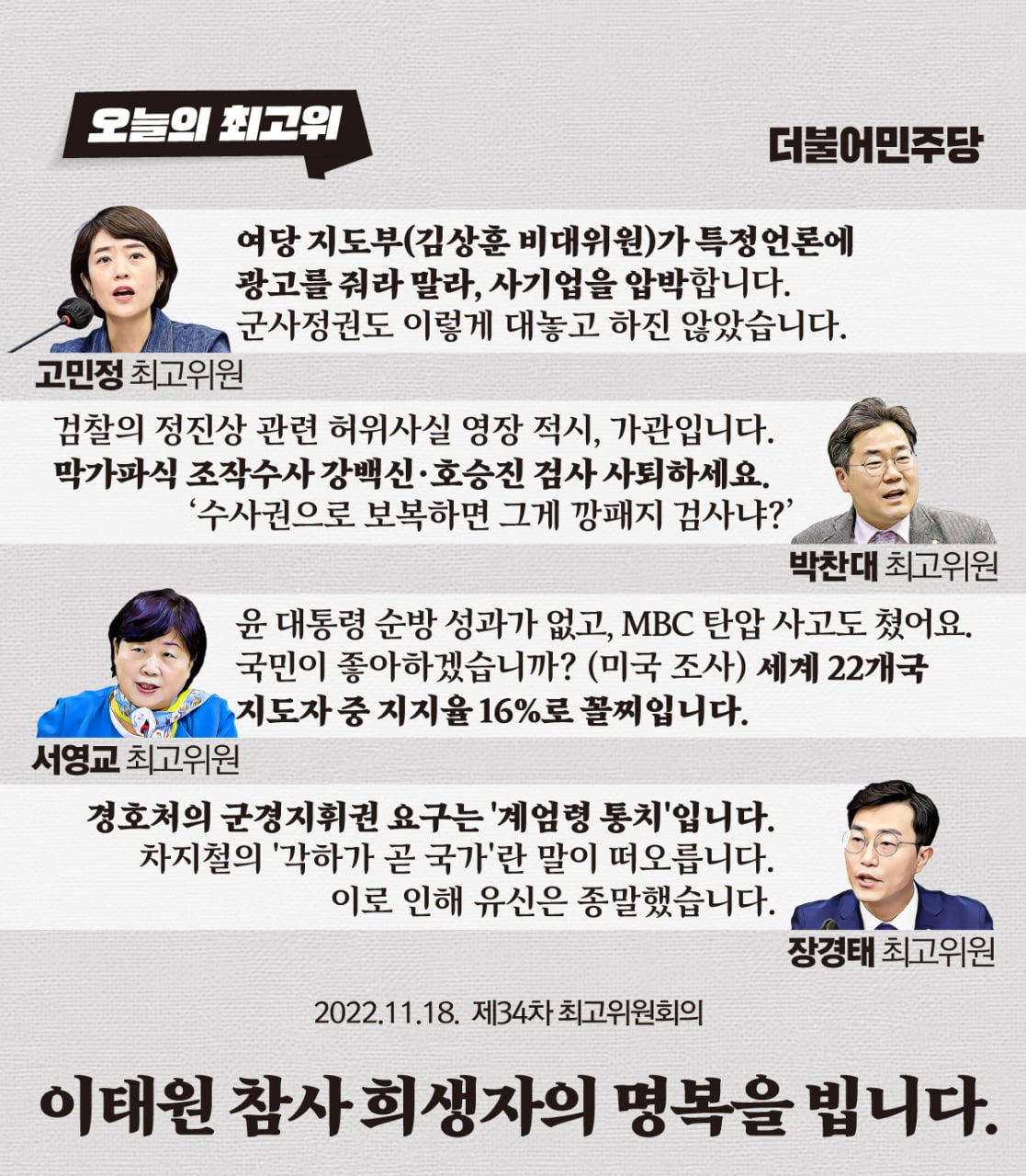 2022.11.18 오늘의 한마디, 오늘의 최고위