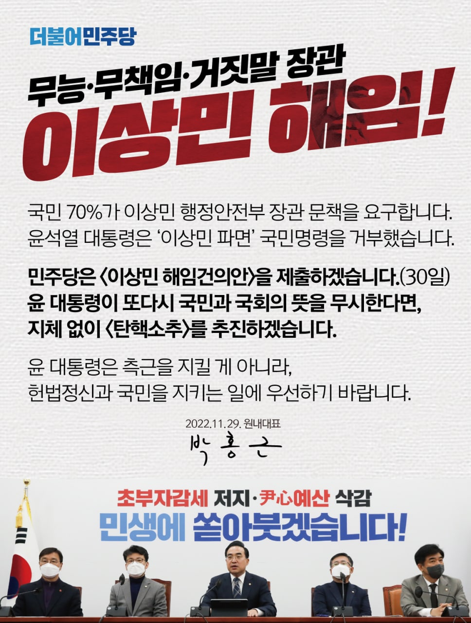 무능 ·무책임·거짓말 장관 이상민 해임!