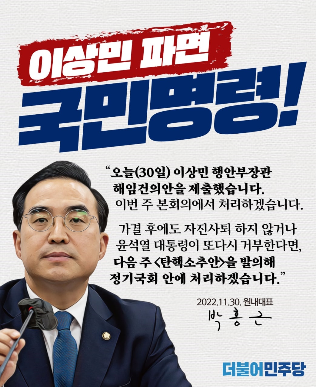 이상민 파면 국민명령!