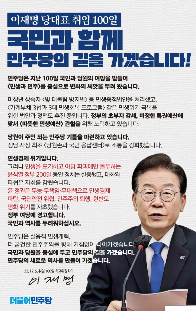 [이재명 당대표 취임 100일] 국민과 함께 민주당의 길을 가겠습니다!