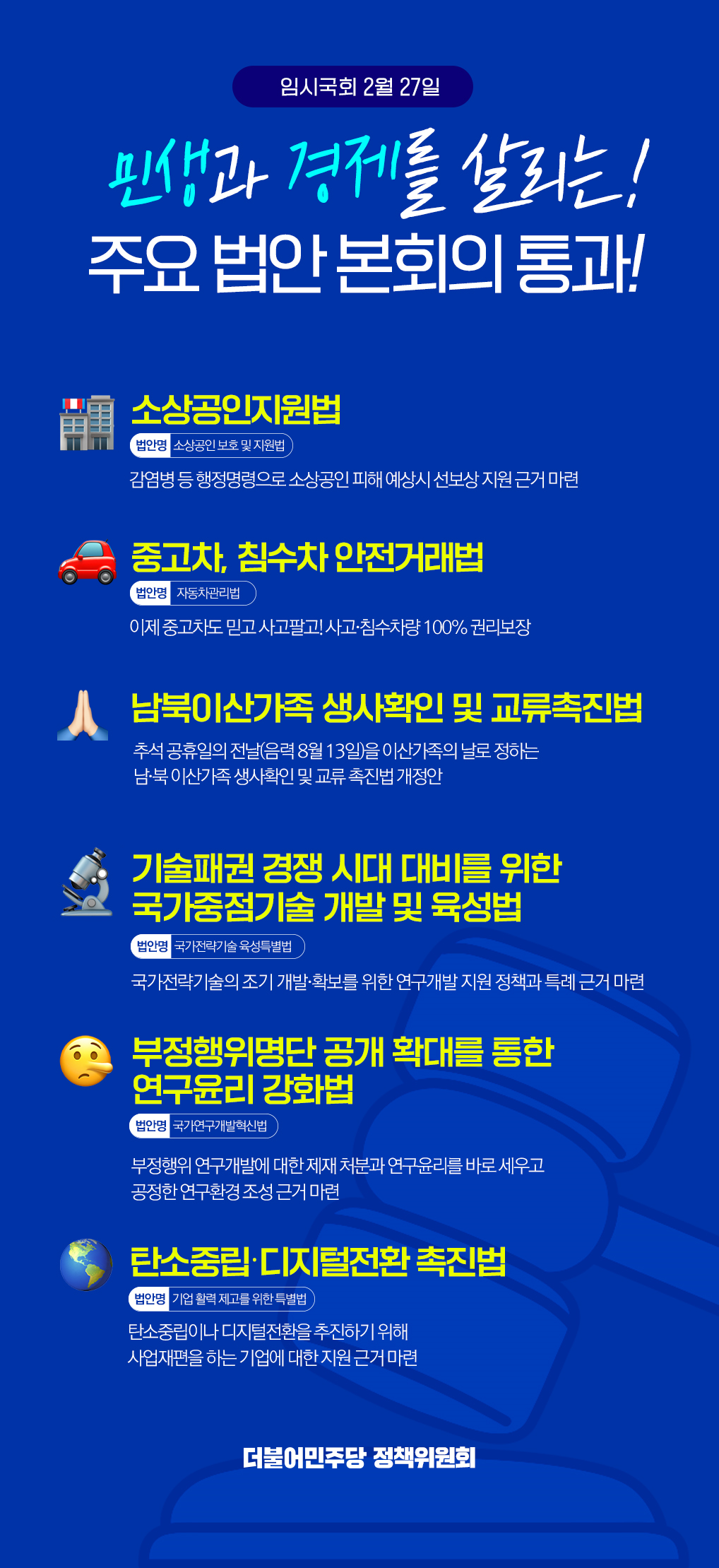 민생과 경제 살리는! 주요 법안 본회의 통과!