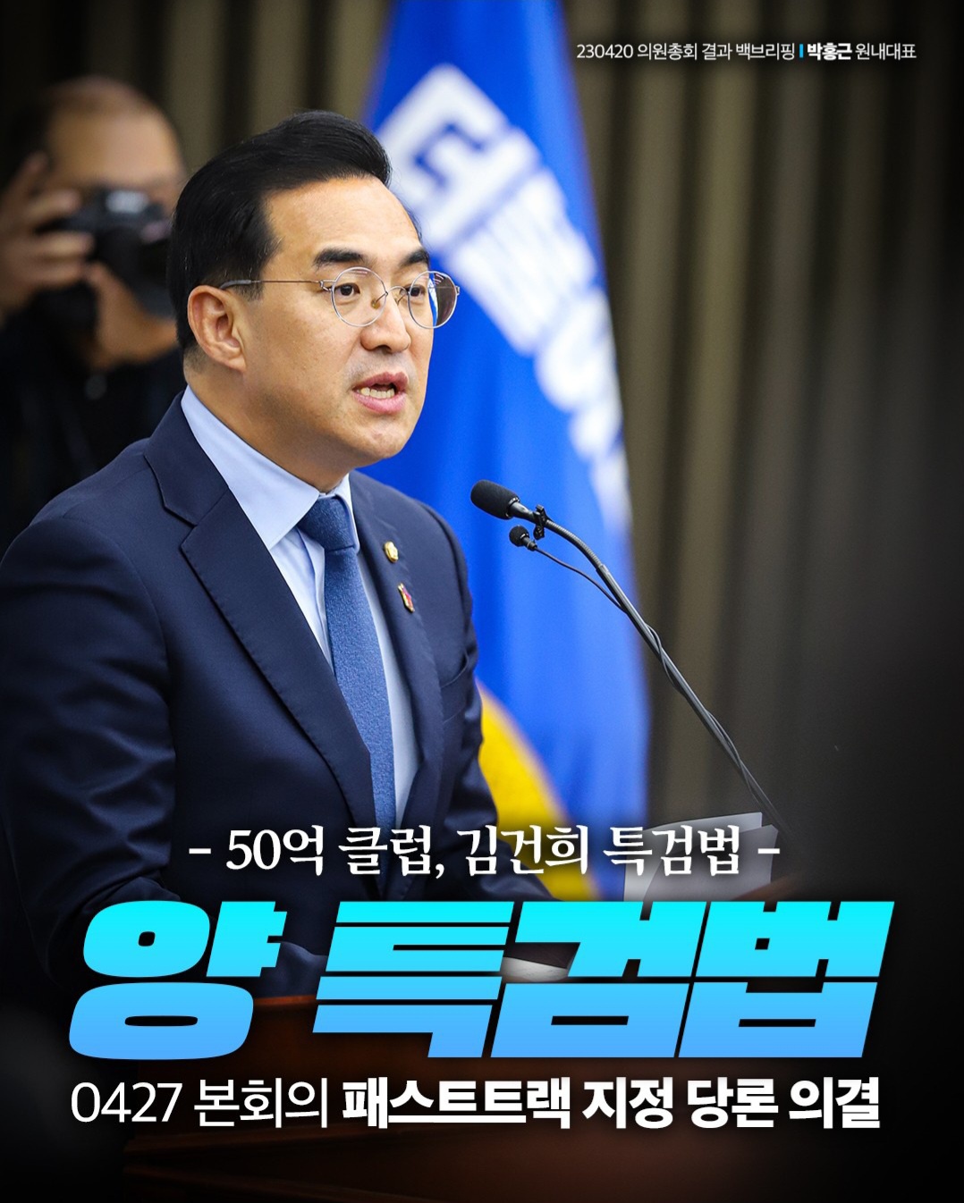 "양 특검법" 0427 본회의 패스트트랙 지정 당론 의결