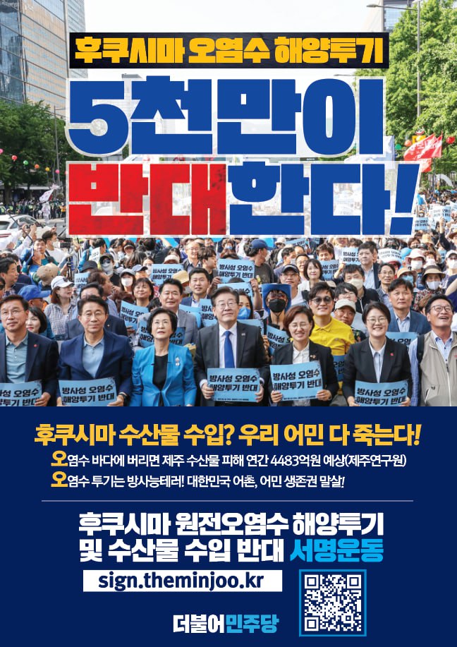 후쿠시마 오염수 해양투기 5천만이 반대한다!