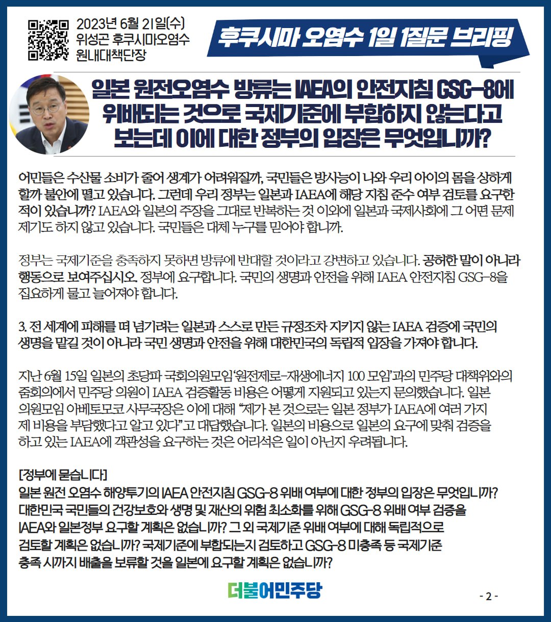 23.06.21 후쿠시마 오염수 1일1질문 브리핑