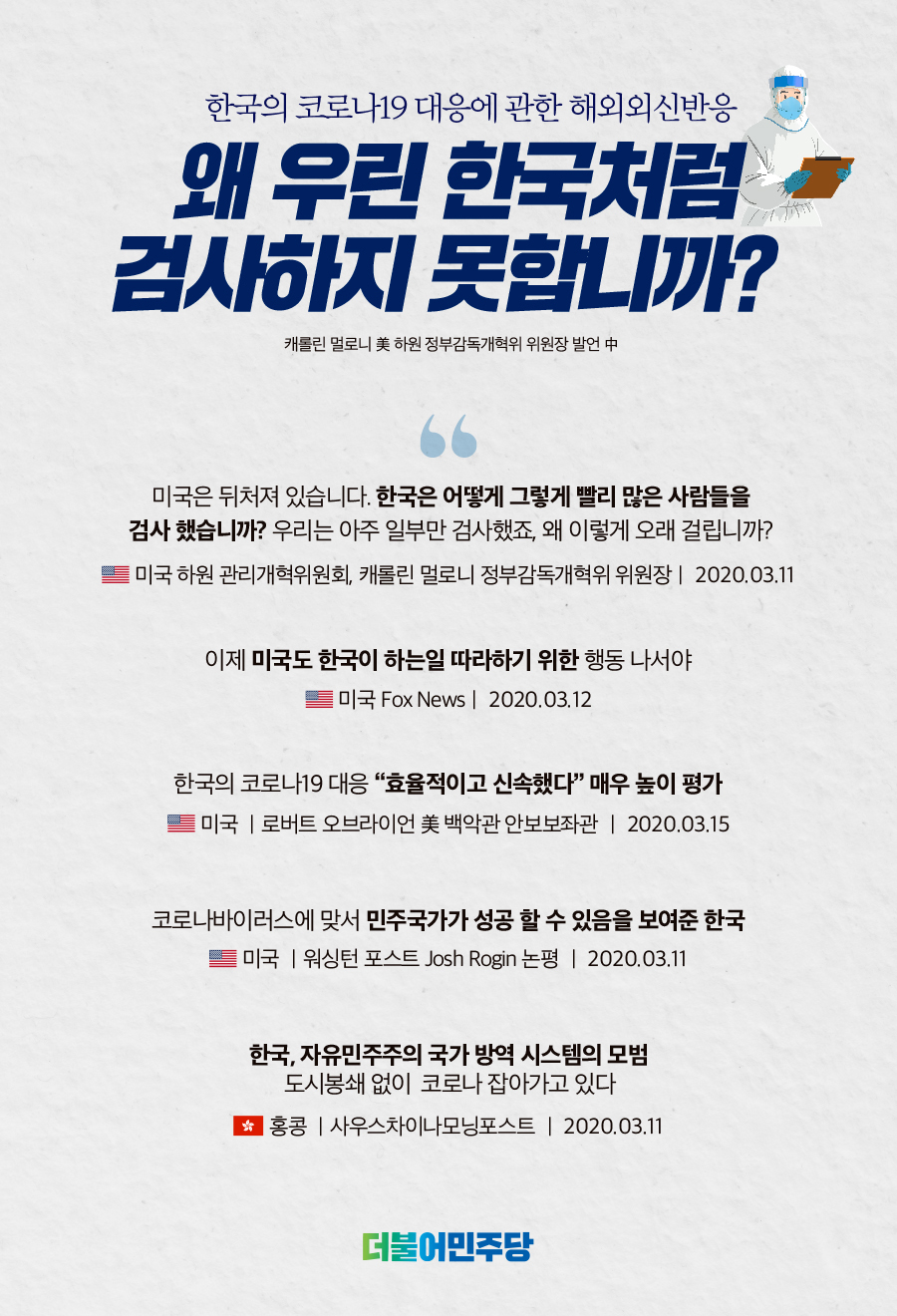코로나19 대응에 관한 해외외신반응 : 왜 우린 한국처럼 검사하지 못합니까?