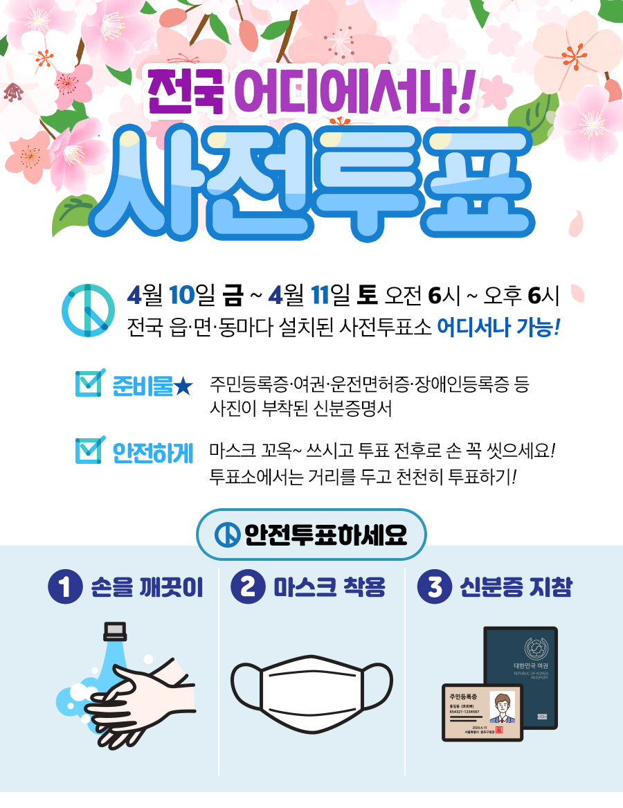 4월 10일(금) ~ 11일(토) 오전 6시 ~ 오후 6시까지 사전투표!