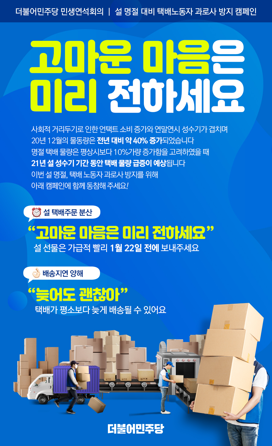 [설 명절 대비 택배노동자 과로사 방지 캠페인] 고마운 마음은 미리 전하세요