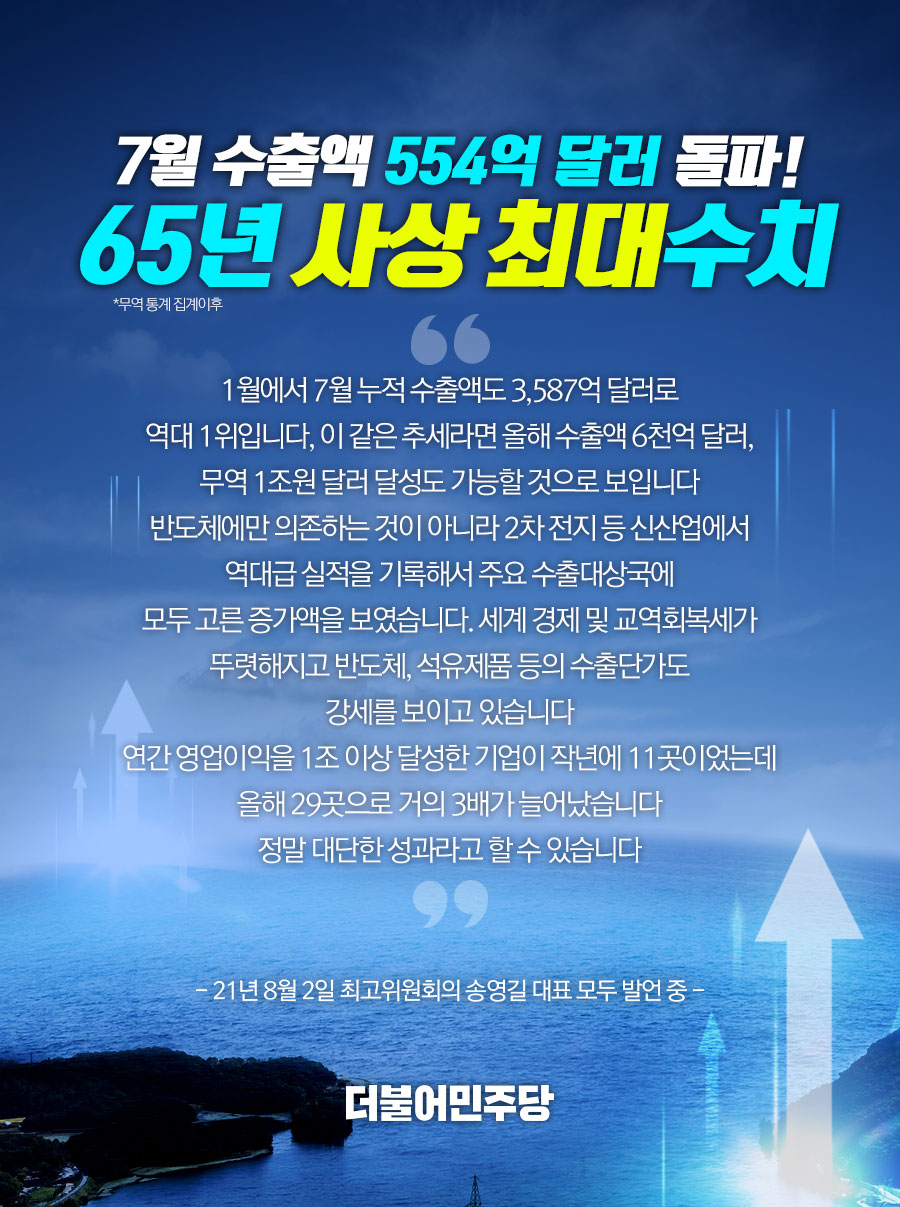 7월 수출액 554억 달러 돌파! 65년 사상 최대수치