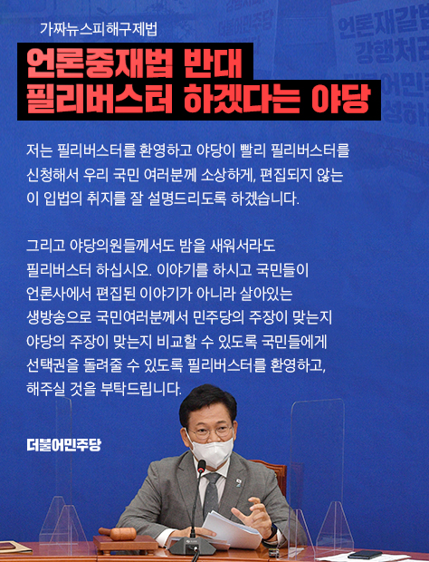 언론중재법 반대 필리버스터 하겠다는 야당, 필리버스터를 환영하고 해주실 것을 부탁드립니다.